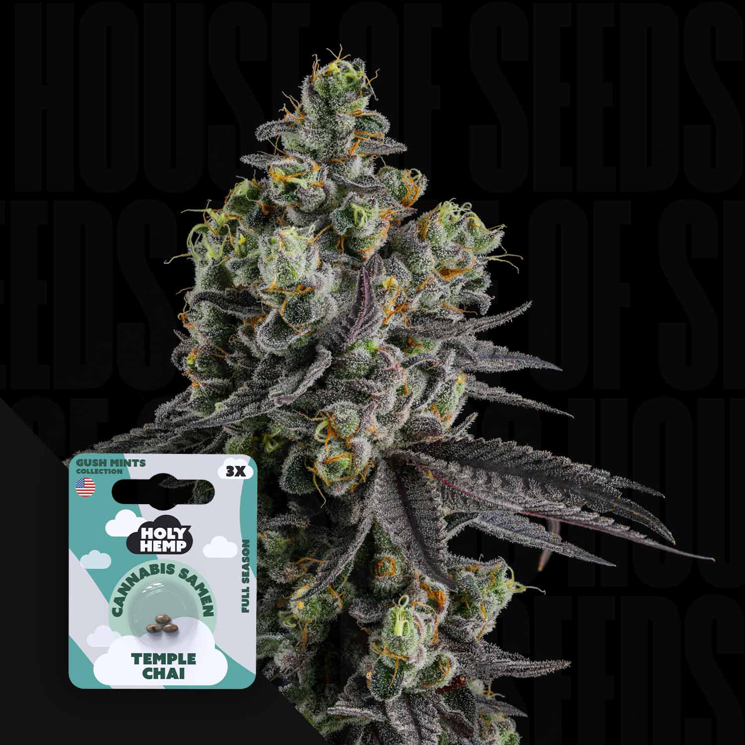 Temple Chai ist eine exklusive Hybridzüchtung aus dem Hause Holy Hemp und vereint die besten Eigenschaften zweier charakterstarker Sorten: Orange Chai und Gush Mints. Die Sorte zeigt eine robuste, buschige Wuchsform, die typisch für Indica-dominante Hybride ist. Mit einer Blütezeit von etwa 56 bis 65 Tagen entwickelt Temple Chai dichte, harzige Blüten, die durch ihre orangefarbenen und violetten Akzente auch optisch beeindrucken. Die Pflanzen reagieren sensibel auf ihre Umgebung, was sie besonders für erfahrene Grower interessant macht. Während Orange Chai eher wärmere Bedingungen bevorzugt, bringt Gush Mints Anpassungsfähigkeit an gemäßigte Klimazonen mit ein – eine Kombination, die Temple Chai zu einer vielseitigen Sorte macht. Unter idealen Bedingungen liefert sie mittlere bis hohe Erträge und belohnt Anbauer mit einer ausgeprägten Harzproduktion, die schon während der Blüte ein intensives, süß-zitrusartiges und minzig-würziges Aroma verströmt.