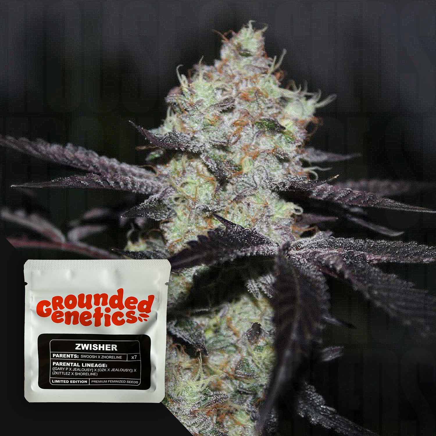 Zwisher, eine bemerkenswerte Hybrid-Sorte von Grounded Genetics, besticht durch ihr ausgewogenes Verhältnis von Sativa- und Indica-Eigenschaften. Die Cannabis-Samen dieser Kreuzung aus Swoosh mit Zkittlez x Shoreline entwickeln sich zu robusten Pflanzen mit mittlerer bis hoher Wuchshöhe und starken Seitenästen. Die resultierenden Blüten sind dicht, harzreich und weisen eine ansprechende Farbpalette von tiefgrün bis violett auf.